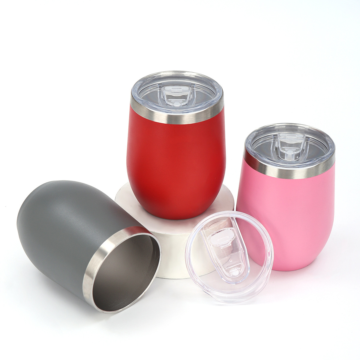 Dit is eierdop-vormige koppies, ook bekend as U-vormige rooiwyn koppies, eier koppies, geïsoleerde koppies, of eierdop water koppies. Hulle kom in 'n verskeidenheid kleure soos turkoois, groen, pienk, blou, grys en swart. Gemaak van vlekvrye staal, hulle het 'n unieke eierdop-agtige voorkoms. Met 'n deursigtige deksel is hulle geskik vir rooiwyn, water en ander drankies. Die ontwerp lyk nie net stylvol nie, maar bied waarskynlik ook goeie isolasieprestasie, wat dit gerieflik maak vir beide daaglikse gebruik en om drankies te geniet.