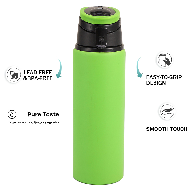 Hierdie stylvolle draagbare aluminium sportwaterbottel met 'n kapasiteit van 710ml is baie deurdag in sy ontwerp. Die groot kapasiteit van 710 ml kan aan die drinkbehoeftes voldoen tydens lang buitelugsport, fiksheid of reis, en die moeilikheid van gereelde hidrasie verminder.
