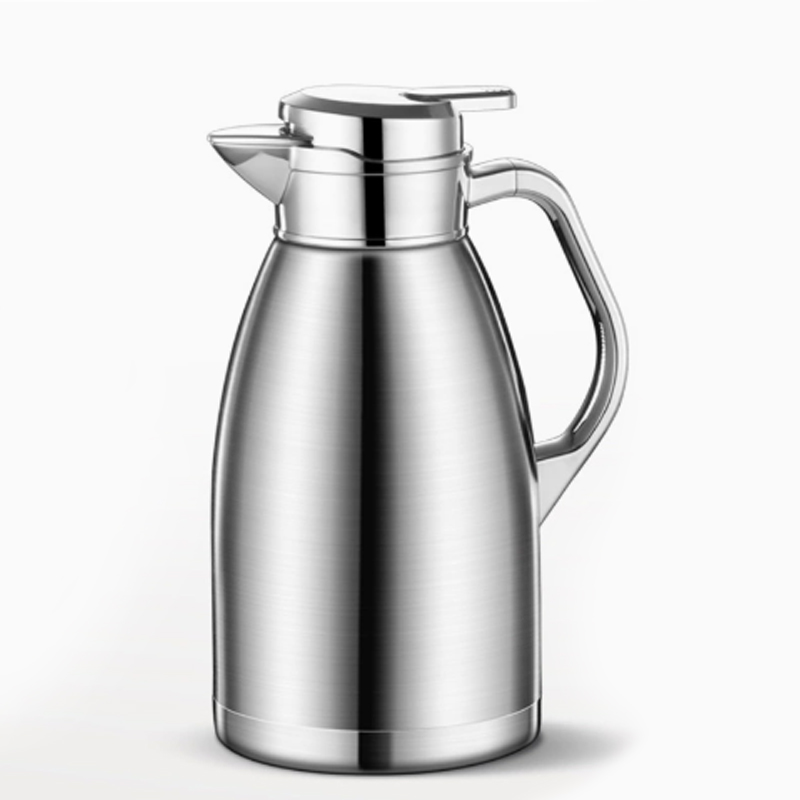 Hierdie geïsoleerde waterbottel kom in verskeie kleuropsies, insluitend pienk, silwer en blou. Die minimalistiese dog elegante ontwerp het 'n gladde metaalliggaampies, gepaard met 'n gesofistikeerde deksel en handvatsel, wat dit veelsydig maak vir verskillende tuis- of kantoorversierstyle. Dit is vervaardig van vlekvrye staal met 'n dubbele laag vakuumisolasiestelsel, en behou effektief temperatuur om warm water op optimale vlakke te handhaaf vir verlengde gebruik. Die ergonomiese greep verseker gemaklike beheer tydens giet, terwyl die maklik oop tuit-ontwerp gladde werking met minimale morsrisiko waarborg, ideaal om warm drankies aan verskeie mense te bedien.