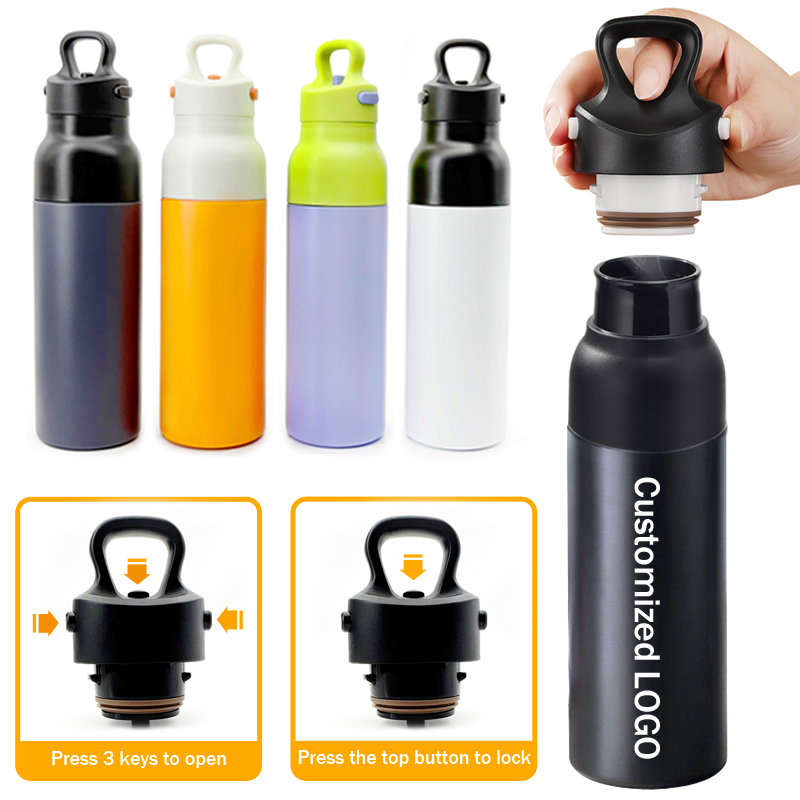Dit demonstreer die dekselwerkingsmeganisme van 'n motorgemonteerde geïsoleerde waterbeker. Deur die syknoppie te druk maak die deksel oop vir gerieflike drink, terwyl die boonste knoppie dit moeiteloos toemaak. Die eenhandige bedieningsontwerp laat bestuurders toe om gemaklik water te drink tydens bestuur, wat afleidings van koppiehantering tot die minimum beperk en veiligheid verbeter. Daarbenewens verseker die vlekvrye staal liggaam uitstekende termiese retensie.
