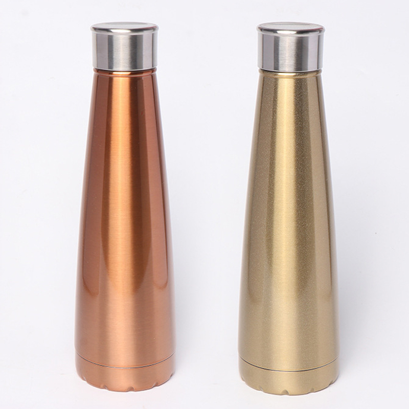 Dit is 'n goue gekleurde Thermos -bottel. Die hoogte is 25,5 cm en sy deursnee is 7,7 cm. Dit het 'n gladde, koniese ontwerp met 'n vlekvrye staaldop, wat 'n elegante en stylvolle voorkoms bied.
