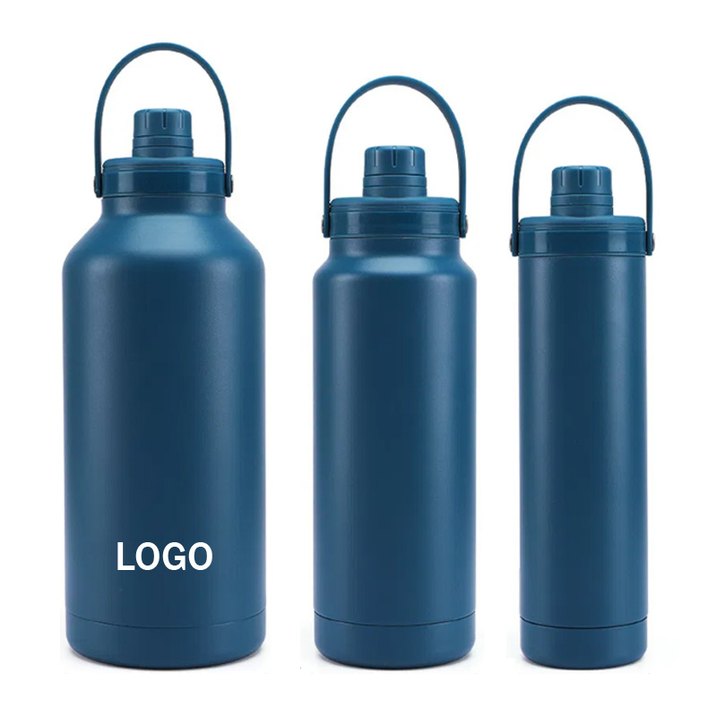 Bekendstelling van ons reeks blou vlekvrye staalwaterbottels, beskikbaar in drie groottes. Elke bottel het 'n gerieflike drahandvatsel vir maklike vervoer. Die bottel kan met u logo aangepas word, wat dit ideaal maak vir handelsmerkpromosie of verpersoonliking. Hierdie bottels, ideaal om gehidreer te bly tydens buitelugaktiwiteite, oefensessies of daaglikse pendel, kombineer funksionaliteit met 'n gladde ontwerp.
