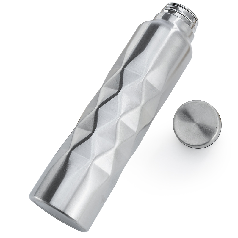 Les jou dors in styl met hierdie moderne enkelwand-waterbottel, gemaak van premium vlekvrye staal vir langdurige gebruik. Sy opvallende diamant-tekstuur lyf gee 'n slanke aanraking terwyl dit greep verbeter, wat dit perfek maak vir pendel, oefensessies of daaglikse boodskappe.