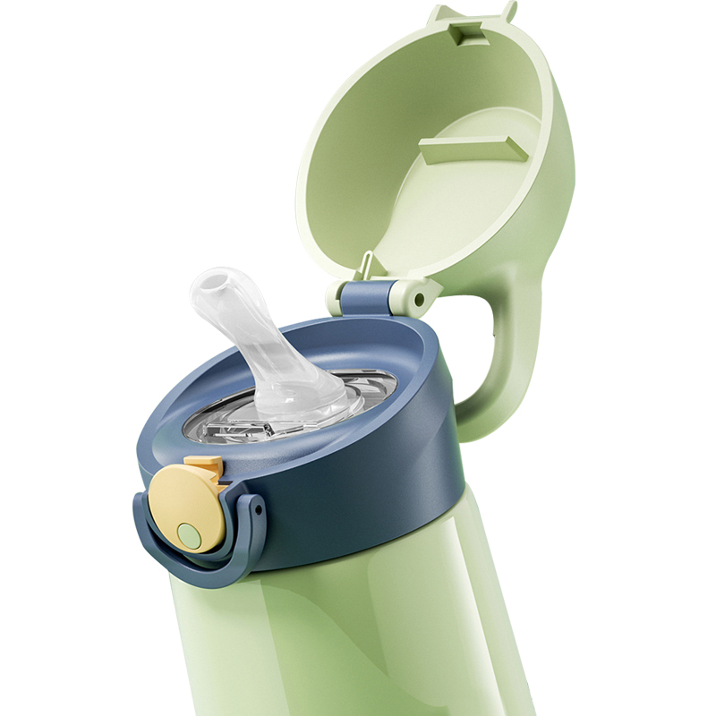Die bekerdeksel het 'n gerieflike handvatsel vir maklike vervoer deur kinders. Die liggaam is versier met tekenprentpatrone om hul aandag te trek en hul belangstelling in drinkwater aan te wakker. As u op die knoppie op die deksel druk, kan dit maklik wees, en dit maak dit gerieflik vir kinders om deur die strooi te drink.
