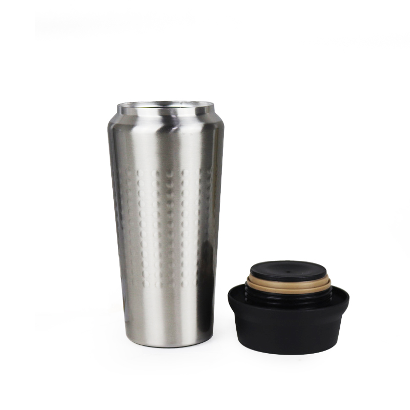 Dit gebruik 'n dubbele vlekvrye staalstruktuur om isolasie en koue bewaringsfunksie te bewerkstellig, wat die temperatuur van drankies vir 'n lang tyd kan handhaaf. Dit is geskik vir die daaglikse gebruik van koffie, tee, ens., En is gerieflik vir kantoorgebruik of uitvoering. Dit kan ook volgens die vraag met logo aangepas word, wat ook geskik is vir geskenke.