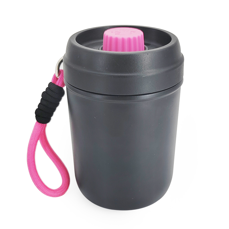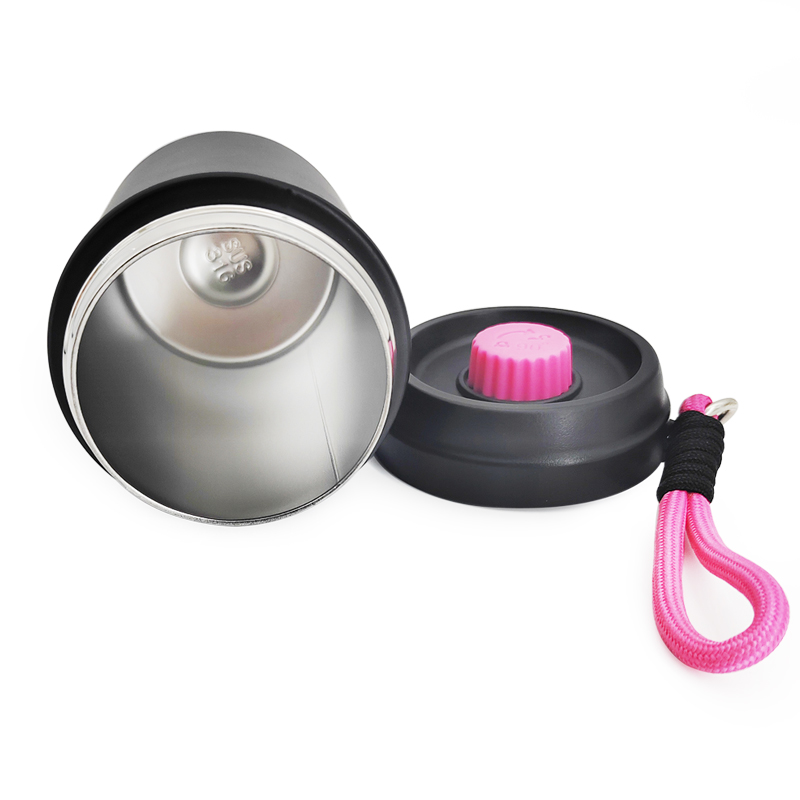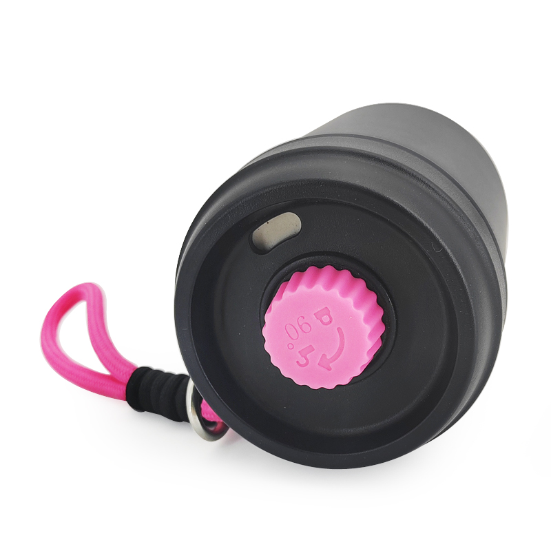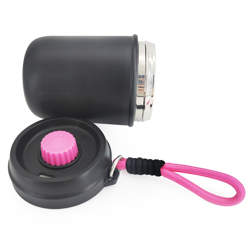 Die ontwerp het 'n minimalistiese dog praktiese voorkoms, wat 'n donkergrys basis kombineer met 'n pienk handvatsel en 'n knop deksel vir estetiese aantrekkingskrag en oordraagbaarheid. Dit is vervaardig uit 304 vlekvrye staal en bied veilige duursaamheid met uitstekende termiese isolasie -eienskappe. Die verseëlde deksel verhoed effektief gemors, wat dit ideaal maak om koffie tydens daaglikse pendelaars te dra of drankies en versnaperinge in die buitelug op te slaan - wat funksionaliteit en gemak lewer.