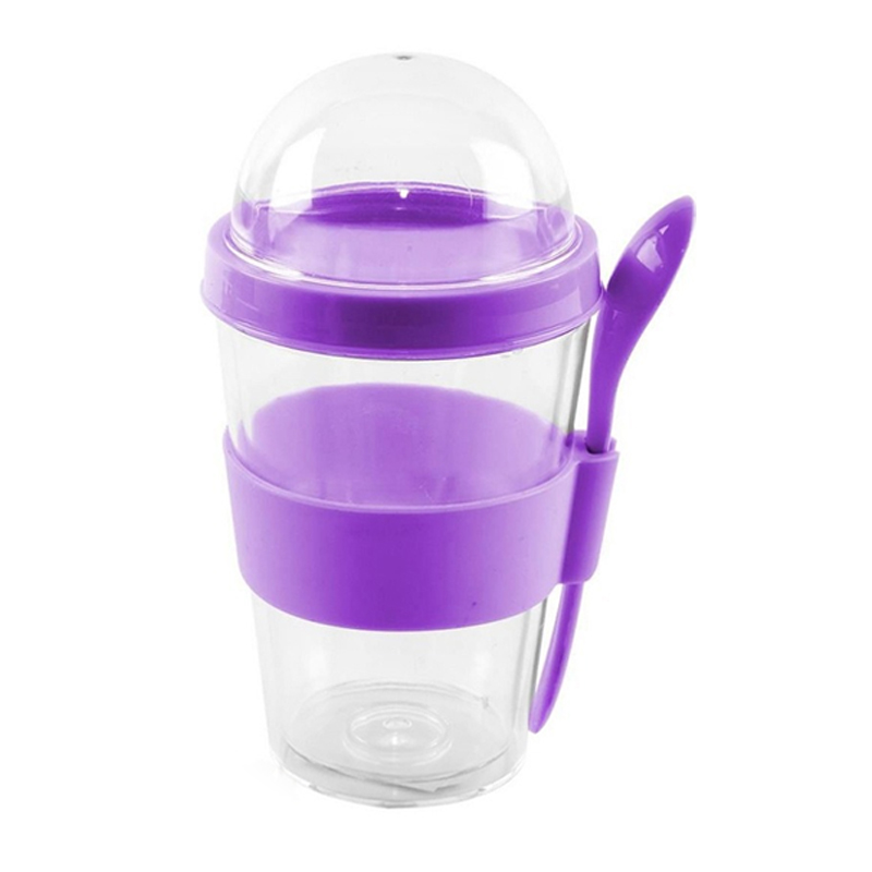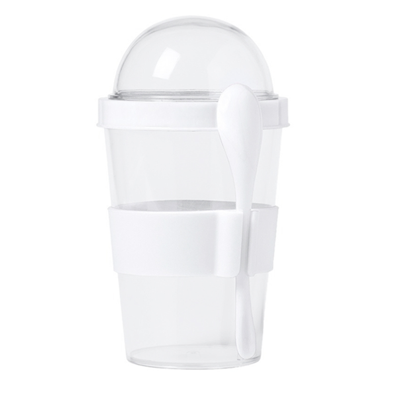 Die koepelvormige deksel dien ook as 'n aparte kompartement vir granola, graan of toppe (geen sopende hawermeel nie!). Vul die hoofbeker met melk, jogurt of smoothie, en hou droë bestanddele vars totdat jy gereed is om te meng - perfek vir pendel, kantooroggende of reis.