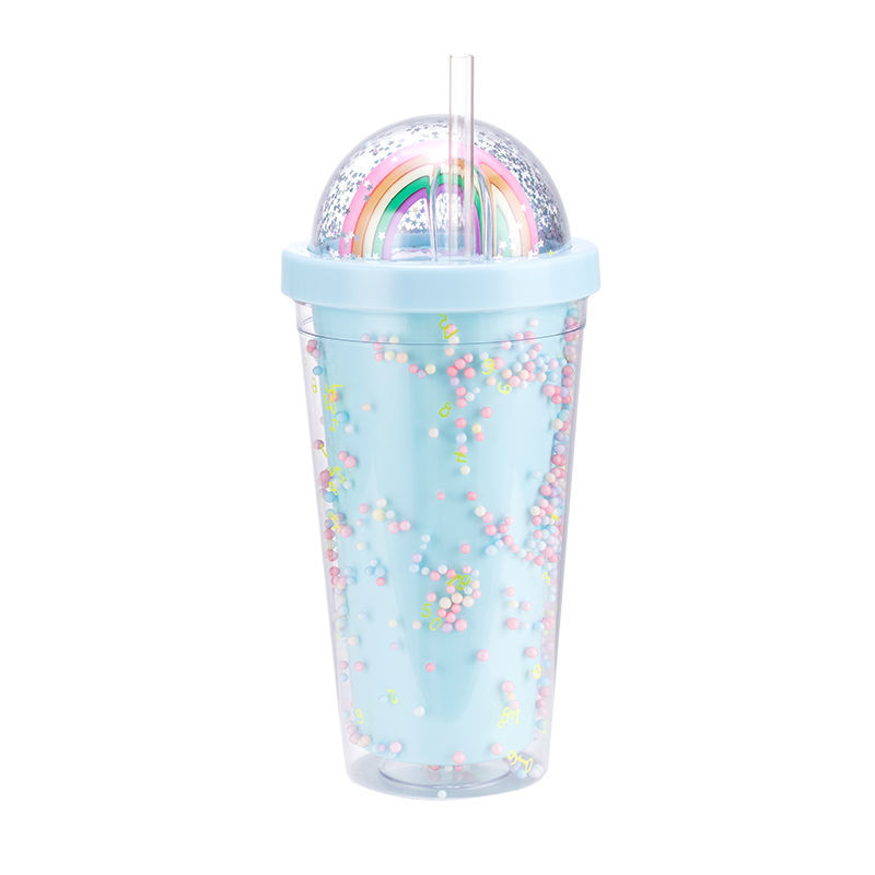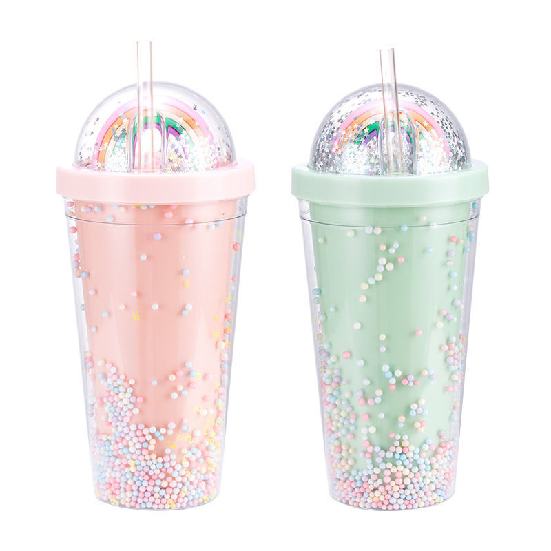 Rainbow Bubble Straw Cup Koeldrank Juice Plastic Tumbler