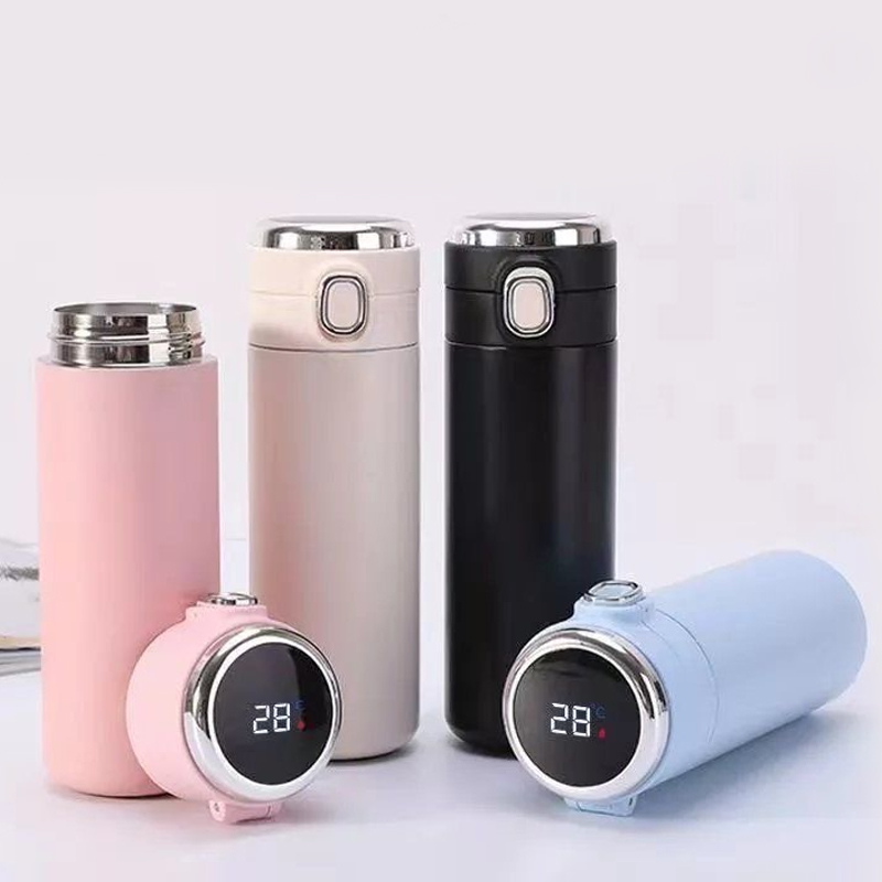Hierdie termosfoto's kom in 'n verskeidenheid bekoorlike kleure, waaronder ligblou, pienk, beige en swart. Een van hul uitstaande kenmerke is die gebou - in temperatuurvertoning. Soos op die foto getoon, kan u maklik die temperatuur van die vloeistof binne -in kontroleer, met lesings soos 56 ° C en 28 ° C duidelik sigbaar.