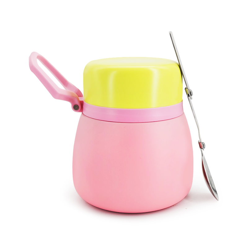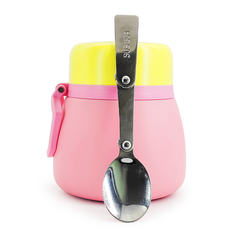 Hierdie lewendige gesmoorde pot met 'n gerieflike handvatsel maak dit maklik om te dra. Die illustrasie hieronder toon die veelsydige kapasiteit vir voedselvervoer, perfek vir babakos, bredies, sop, pasta, jogurt en slaaie. Dit dien dubbele doeleindes: as 'n baba se aanvullende voedselhouer, terwyl dit ook aan volwassenes se behoeftes voldoen om verskillende geregte te dra. Die uitstekende hittetretensie verseker dat hierdie kosse gedurende die ete by die ideale temperatuur bly.