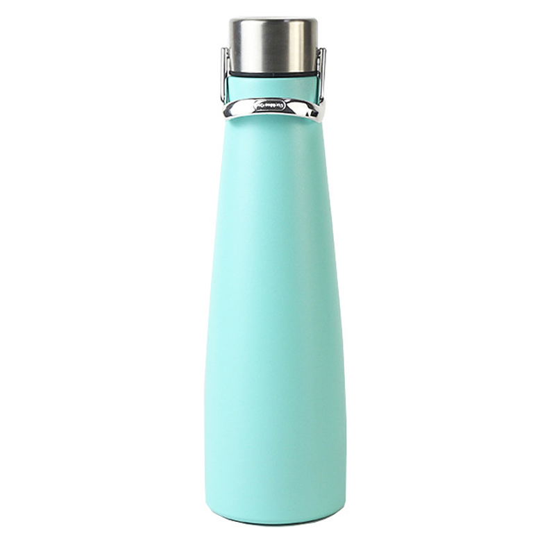 Die metaalhandvatselontwerp maak dit maklik om te dra en kan aan die rugsak gehang word, sodat jy sonder las kan reis. Die verseëlde botteldop pas styf, so dit sal nie lek nie, selfs wanneer dit geskud of geskud word. Die vlekvrye staal bottelliggaam is slytvast en krapbestand, so dit sal nie merke laat wanneer dit daagliks gebruik word nie, en dit kan vir 'n lang tyd gebruik word.